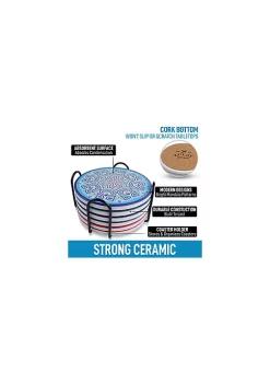Zulay Kitchen Mandala Coasters with Holder & Cork Base – Set Of 6