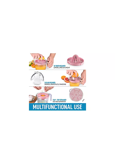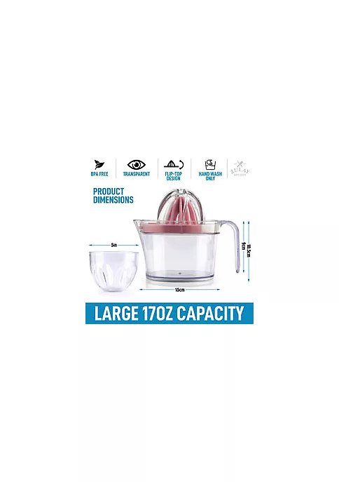 Leave no juice behind with the Zulay Kitchen Juice Reamer Cup. Made with high-quality BPA Free materials built to provide the ultimate convenience for measuring, straining, and extracting every ounce of citrus goodness out of your fruit in one go. The 500ml cup capacity is perfect for holding the freshly squeezed juice when extracting mass quantities of limes, lemons, oranges, or grapefruit.
