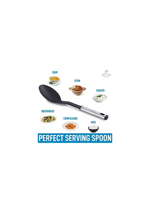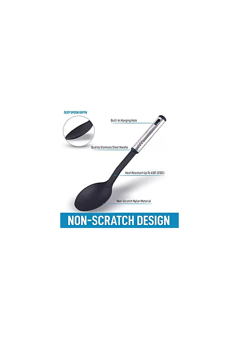 If you are looking for a good kitchen utensil that comes in handy and can be safely used with most cookware, this Zulay Kitchen Nylon Spoon is the one for you! Made with rust-resistant premium quality stainless steel that is resistant to heat up to 410 Fahrenheit. This tool is ideal for basting or combining ingredients by stirring, so you can enhance the flavor of your dishes.