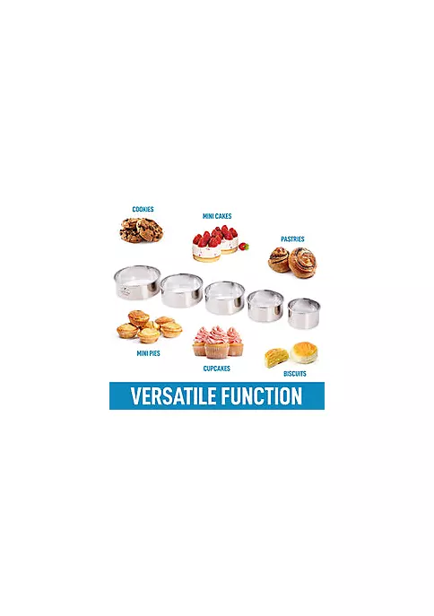 Get that perfect cookie shape with the Zulay Kitchen Round Cookie Cutters. Made with premium quality stainless steel with a classic polish finish that is suitable to use for all-year-round. Perfect for making home-made, professional baked goods including cookies, ravioli, and more. Thanks to their heat-resistant stainless steel construction, they can also be used to cook perfectly shaped eggs and pancakes for breakfast.