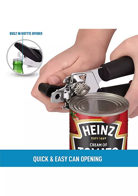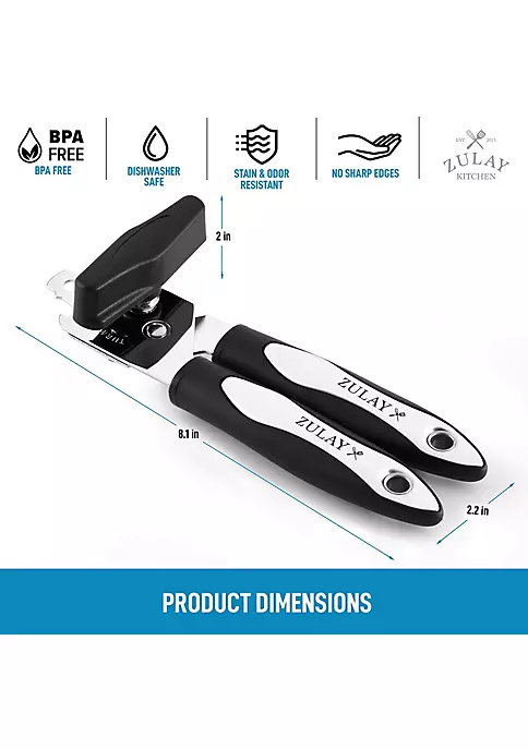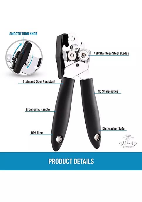 If you’re interested in purchasing a can opener that is built to last this Zulay Kitchen Can Opener is the one for you! Constructed with top-grade 430 stainless steel blades that gets the job done with ease and comfort! Blades clip through metal easily with no sharp edges.