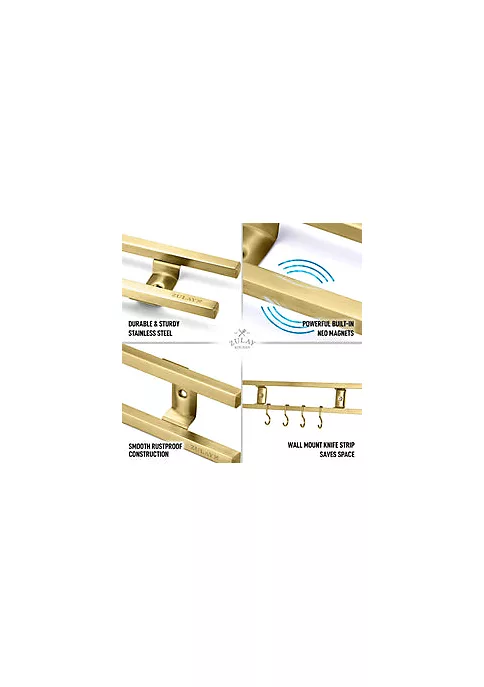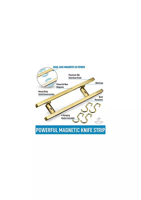 Save precious countertop and drawer space while adding the perfect elegant touch with the Zulay Kitchen Magnetic Knife Strip. Made with high quality 304 stainless steel built with powerful Neodymium magnets, it’s designed for holding small to large knives with ease. Note: knives and utensils NOT included.